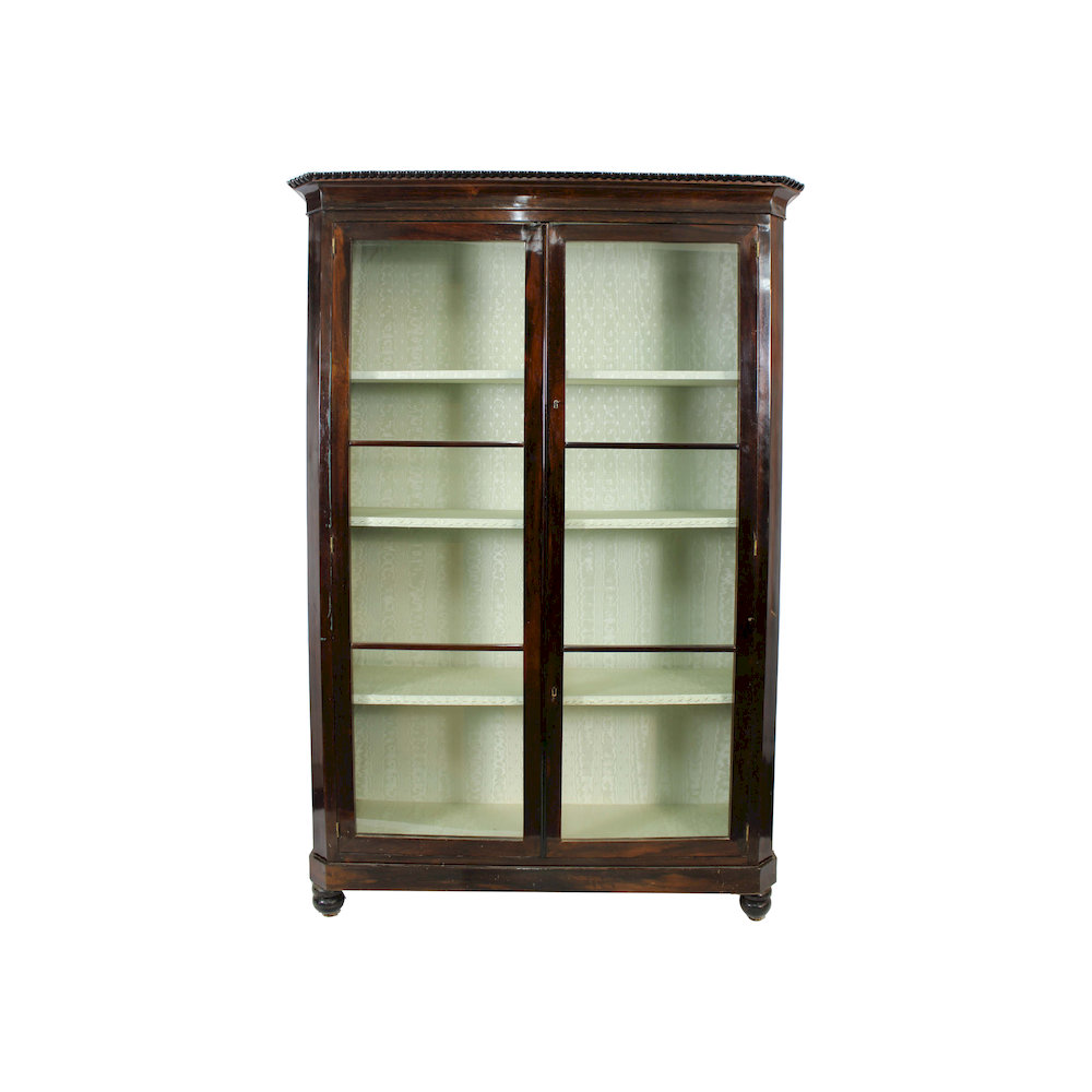 ELEGANTE VETRINA A 2 ANTE in legno di palissandro con cimasa scolpita a guscio d'uovo Sicilia XIX secolo h cm 205 x 140 x 48