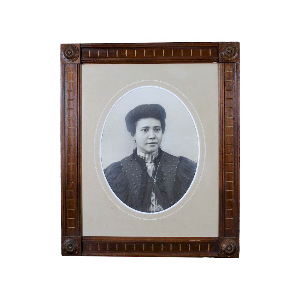 COPPIA CORNICI A CASSETTA in legno di noce con lumeggiature in oro contenenti stampe raffiguranti ritratti Sicilia primi 900 h cm 90 x 74