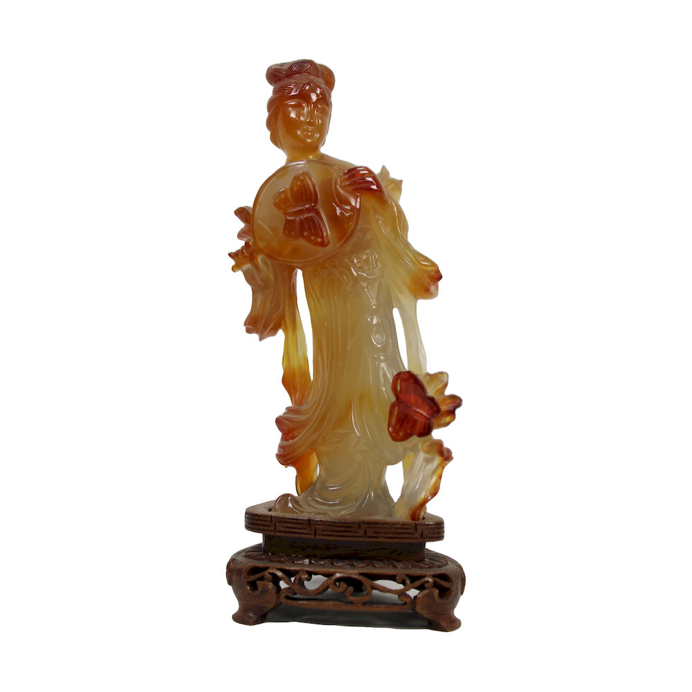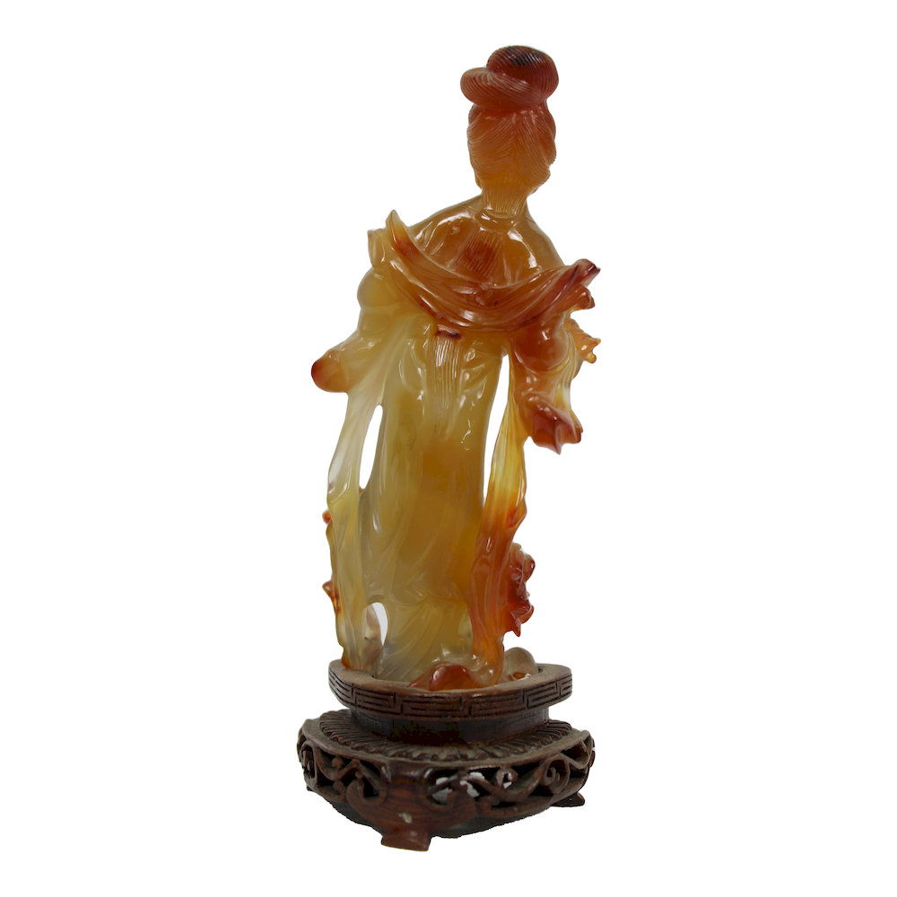 SCULTURA in giada raffigurante geisha con base in legno maestranze orientali prima metà XX secolo h cm 19