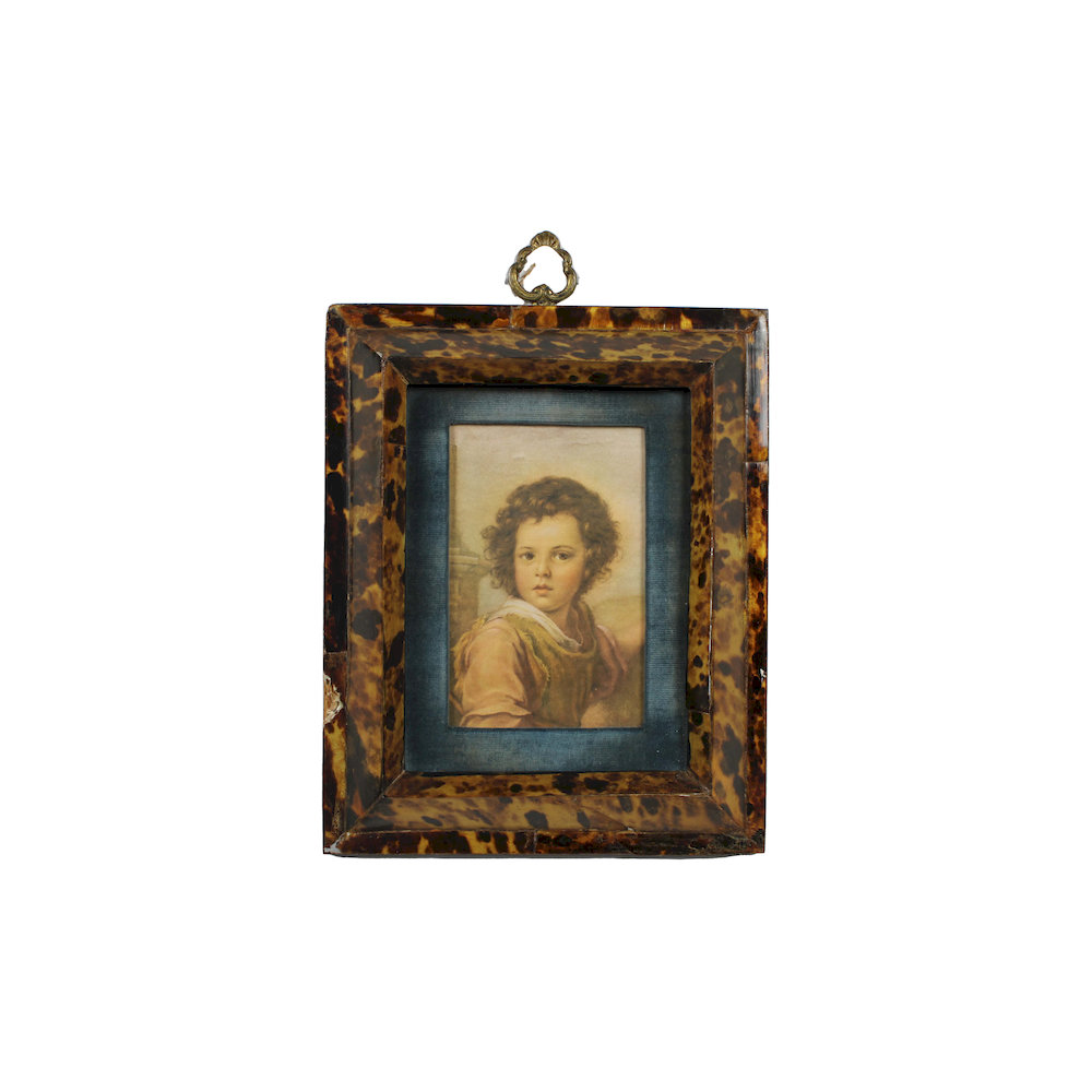 01 cornice rettangolare in materiale prezioso con miniatura raffigurante infante Sicilia XX secolo h cm 19 x 17