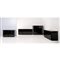 Mobili contenitori componibili in legno laccato lucido nero, composta da due moduli bassi con vano chiuso da anta battente e quattro cassetti, un modulo basso con vani chiusi da tre ante battenti, un modulo alto con vani chiusi da due ante battenti. Segni di uso e graffi.