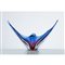Grande coppa in vetro sommerso incolore, lilla e blu, corpo a coda di pesce con base circolare.