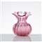 Vaso costolato in vetro sommerso lilla, corpo semisferico, collo a svasare, bocca ondulata e sagomata, base circolare.