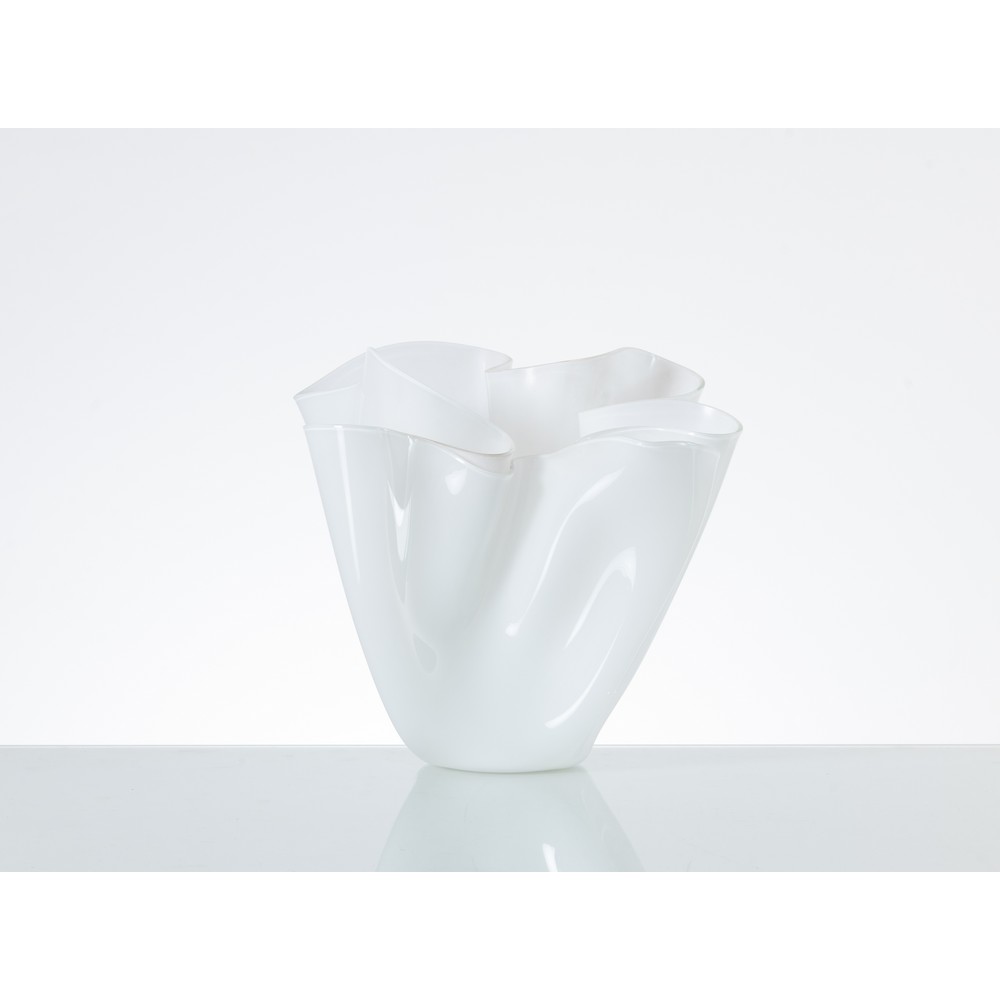 Vaso modello “Fazzoletto” in vetro lattimo, corpo ripiegato a caldo.