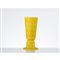 Vaso in vetro giallo decorato con striature ocra, corpo a campana con bocca piana circolare.