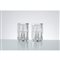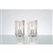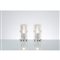 Coppia di lampade da tavolo ad una luce, diffusore cubico in vetro incolore con cavità centrale, base quadrata in metallo cromato.
