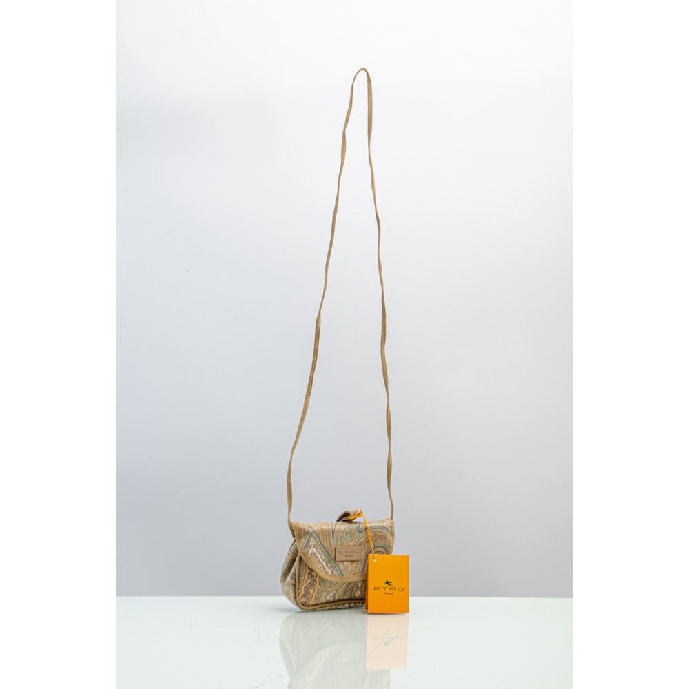 Borsetta a spalla in tessuto a fantasia paisley, chiusura con bottone a pressione dorato. Marchio di produzione sul fronte.