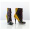 Stivaletti in pelle di capretto nero, cavallino bordeaux e senape, fascia elastica laterale, allacciatura frontale, plateau bianco, tacco a spillo in legno. Marchio di produzione. Taglia 37,5.