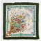 Foulard in seta "Flora" con campo centrale bianco con decoro di mazzo di fiori e scene di personaggi sulla neve, bordo verde. Lievi punti di macchia. Marchio di produzione.
