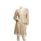 Tailleur composto da una giacca in lino ecrù, collo sciallato decorato con ricami in madreperla e conterie color avorio; una gonna a pieghe in cotone ecrù con balza in raso color avorio. Etichetta di produzione. Giacca taglia 44 e gonna taglia 46.