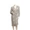 Abito lungo in jersey di seta a fantasia floreale policroma, maniche lunghe, collo a V con ampia scollatura, elastico alla vita, chiusura ad incrocio. Etichetta di produzione. Taglia S-M.