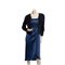 Giacca a maniche lunghe in tessuto di ciniglia blu scuro e lurex, collo arrotondato e bordato in seta nero, chiusura sul fronte con cerniera. Etichetta di produzione. Taglia 42. Abito a tubino in pura seta blu, bretelle in seta, chiusura posteriore con cerniera a zip. Etichetta di produzione. Taglia 46.