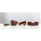Cintura in cuoio marrone con elementi di giunzione in metallo dorato e logato, chiusura con fibbia in metallo dorato con logo e firma; cintura in cuoio marrone, decori con placca in lucite finta tartaruga, chiusura con velcro; cintura in cuoio intrecciato con fettuccia in cotone marrone, chiusura a bottone; cintura in cuoio a fantasia paisley, decori sulla fascia centrale in metallo brunito, chiusura a fasce.