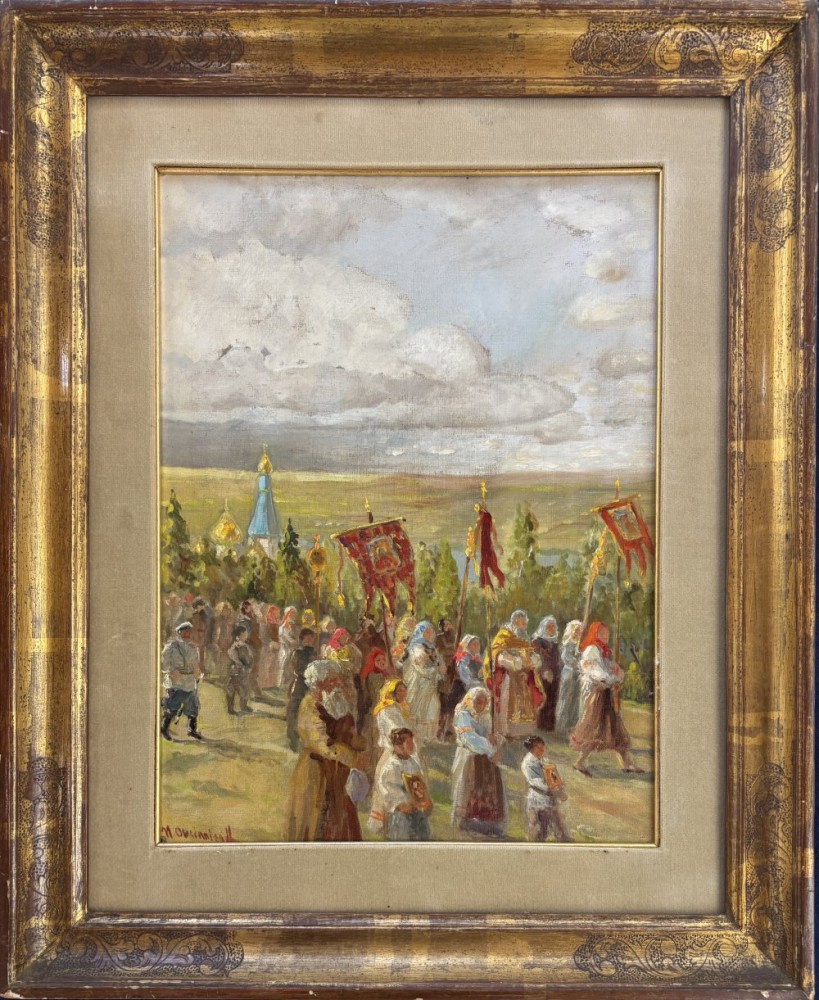 Pittore russo firma indecifrata Russia XIX secolo Processione pasquale