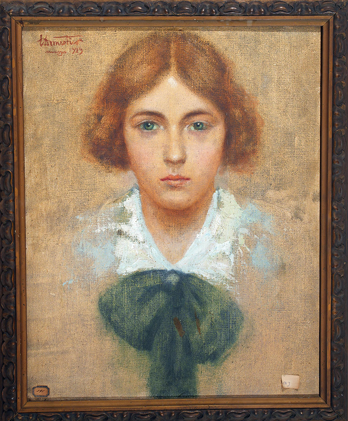 Vincenzo Domestico (Acquaformosa 1906 – Montevideo1971) Ritratto femminile olio su tela, cm 50x40 firmato e datato in alto a sinistra: E. Domestico maggio 1929