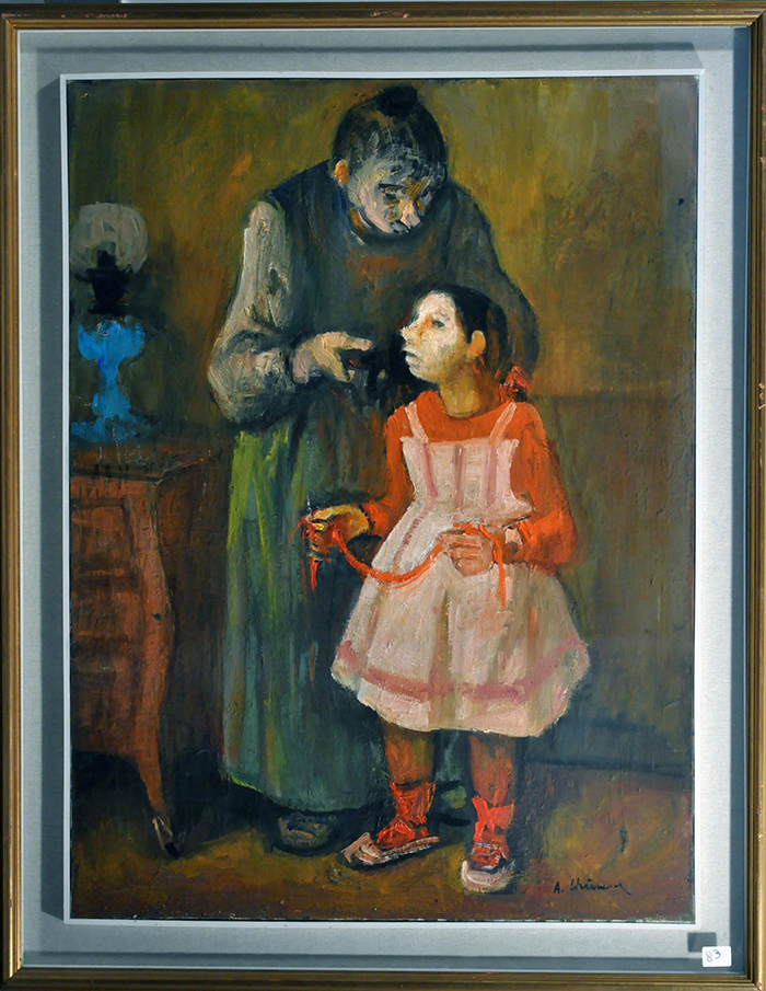 Chiancone Alberto (Porto Santo Stefano, GR 1904 - Napoli 1988) Le trecce olio su tela, cm 80x60 firmato in basso a destra: A. Chiancone