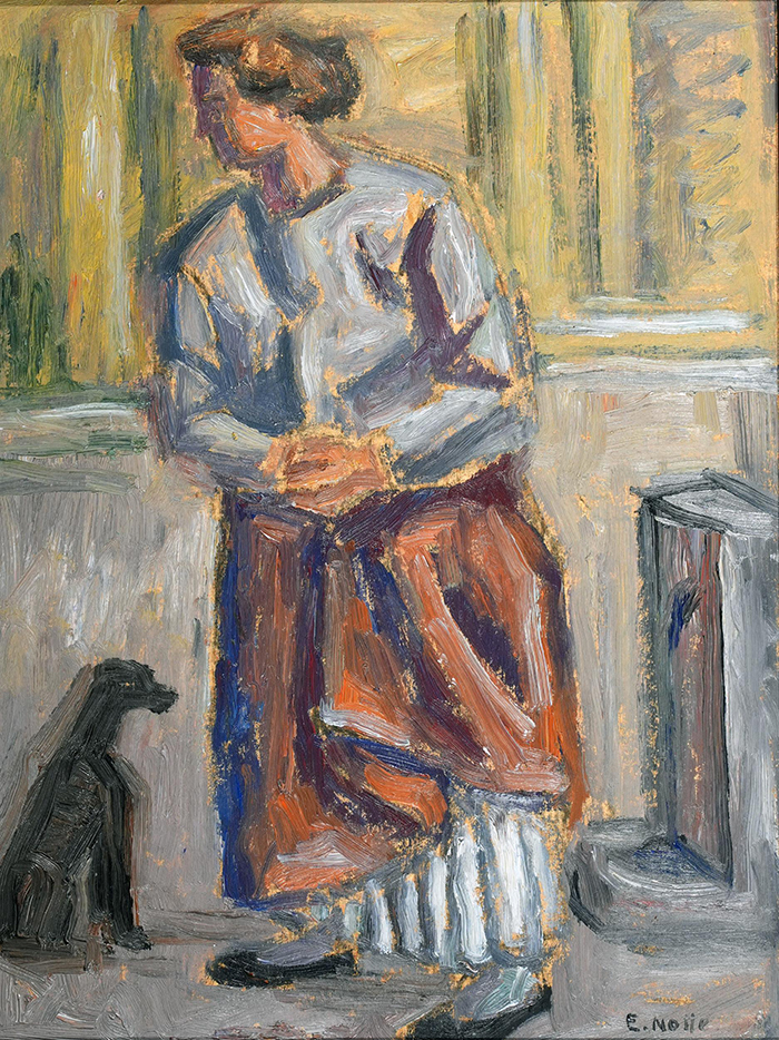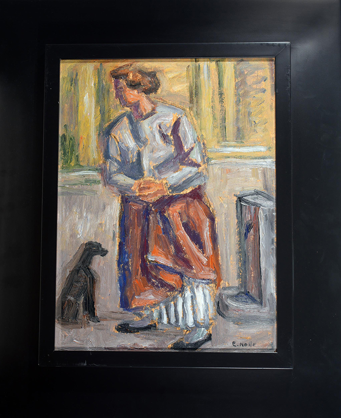 Notte Emilio (Ceglie Messapica, BR 1891 - Napoli 1982) Donna con cane olio su tavola, cm 40x30 firmato in basso a destra: E. Notte