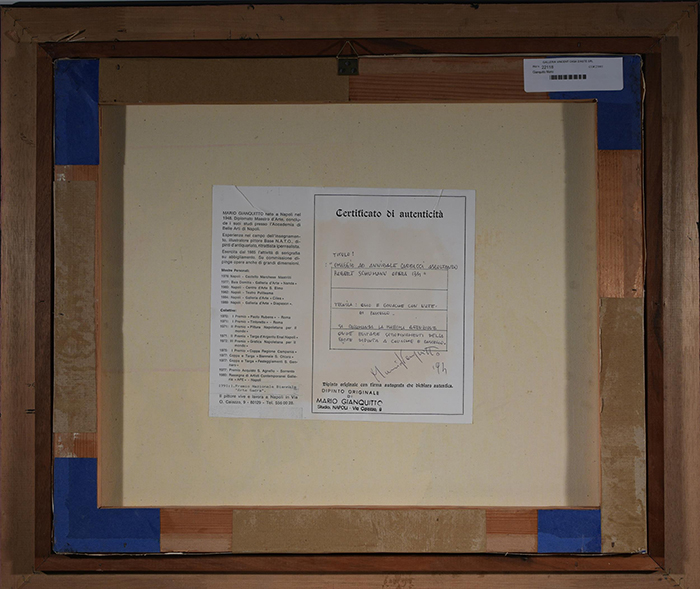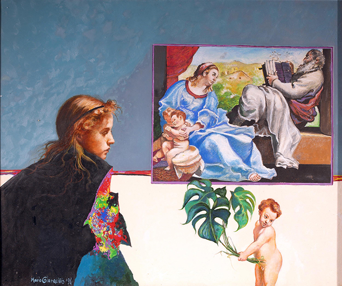 Gianquitto Mario (Napoli 1948) Omaggio ad Annibale Caracci olio su tela, cm 50x60 firmato e datato in basso a sinistra: Gianquitto 94