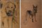 Longobardi Nino (Napoli 1953) a) Figura tecnica mista su carta cm 50x35 b) Cane tecnica mista su carta cm 38,5x29,5 firmato e datato in basso a destra: Longobardi 83