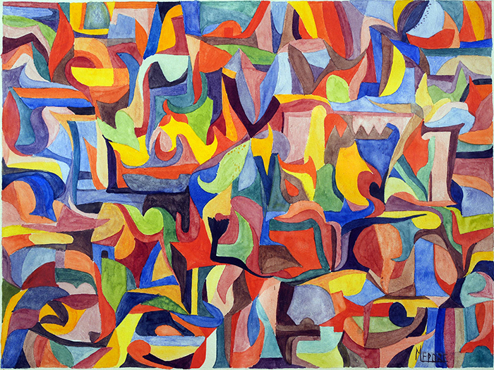 Lepore Mario (Napoli 1908-1972) Composizione futurista tecnica mista su carta, cm 30x40 firmato in basso a destra: M. Lepore