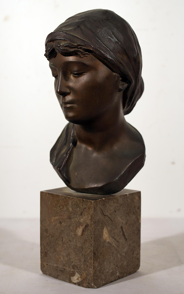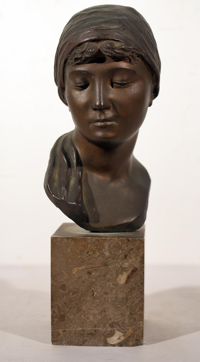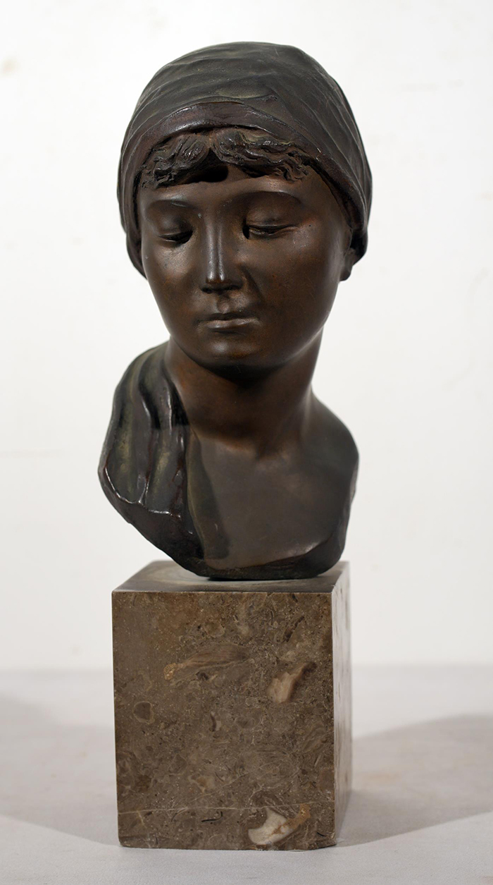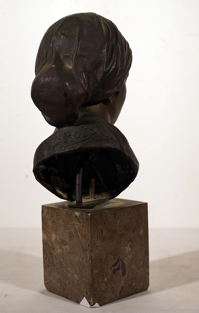 Rossi Edoardo (Napoli 1867 - 1926) Testa di fanciulla bronzo h cm 19 a tergo firmato e iscritto: E. Rossi Napoli