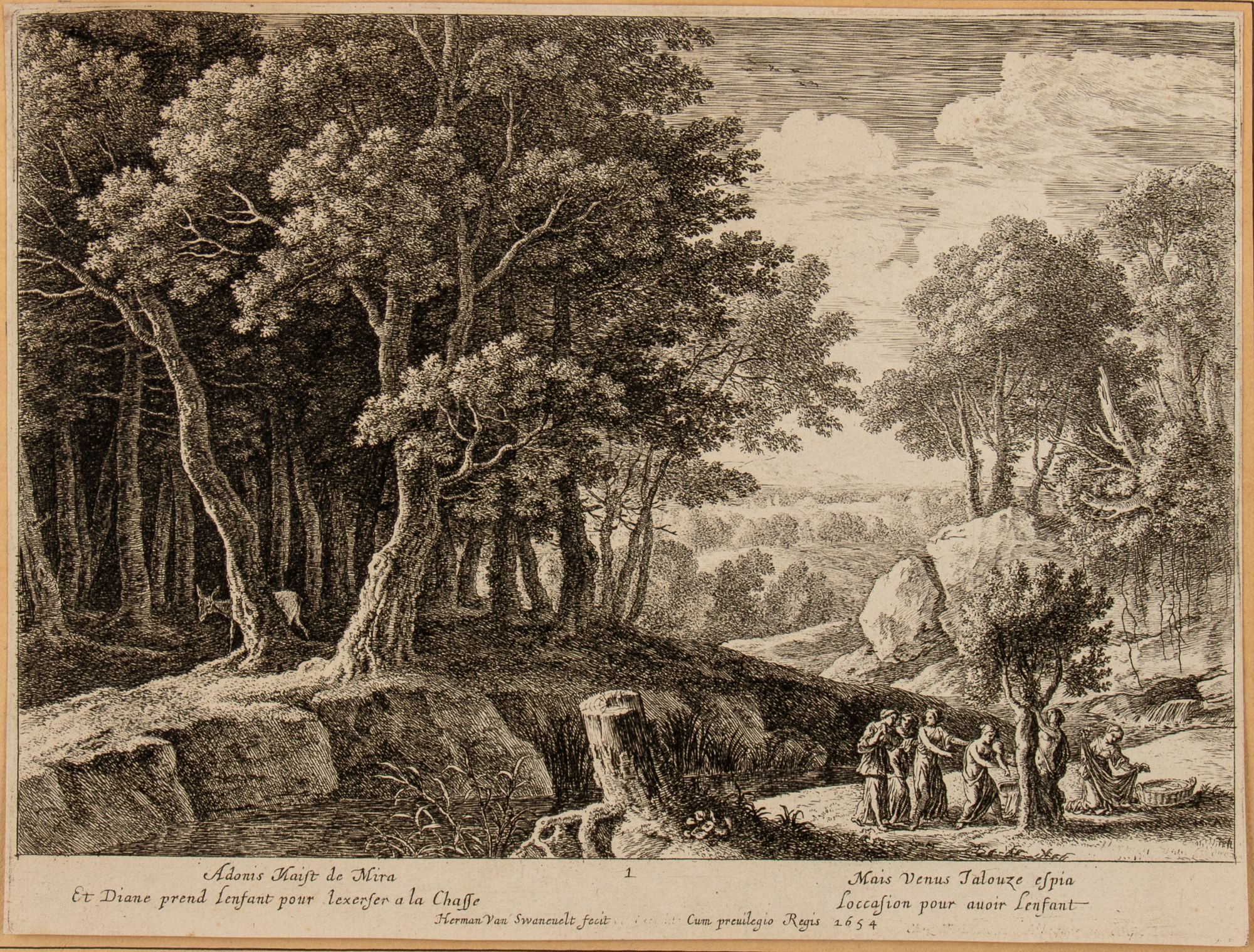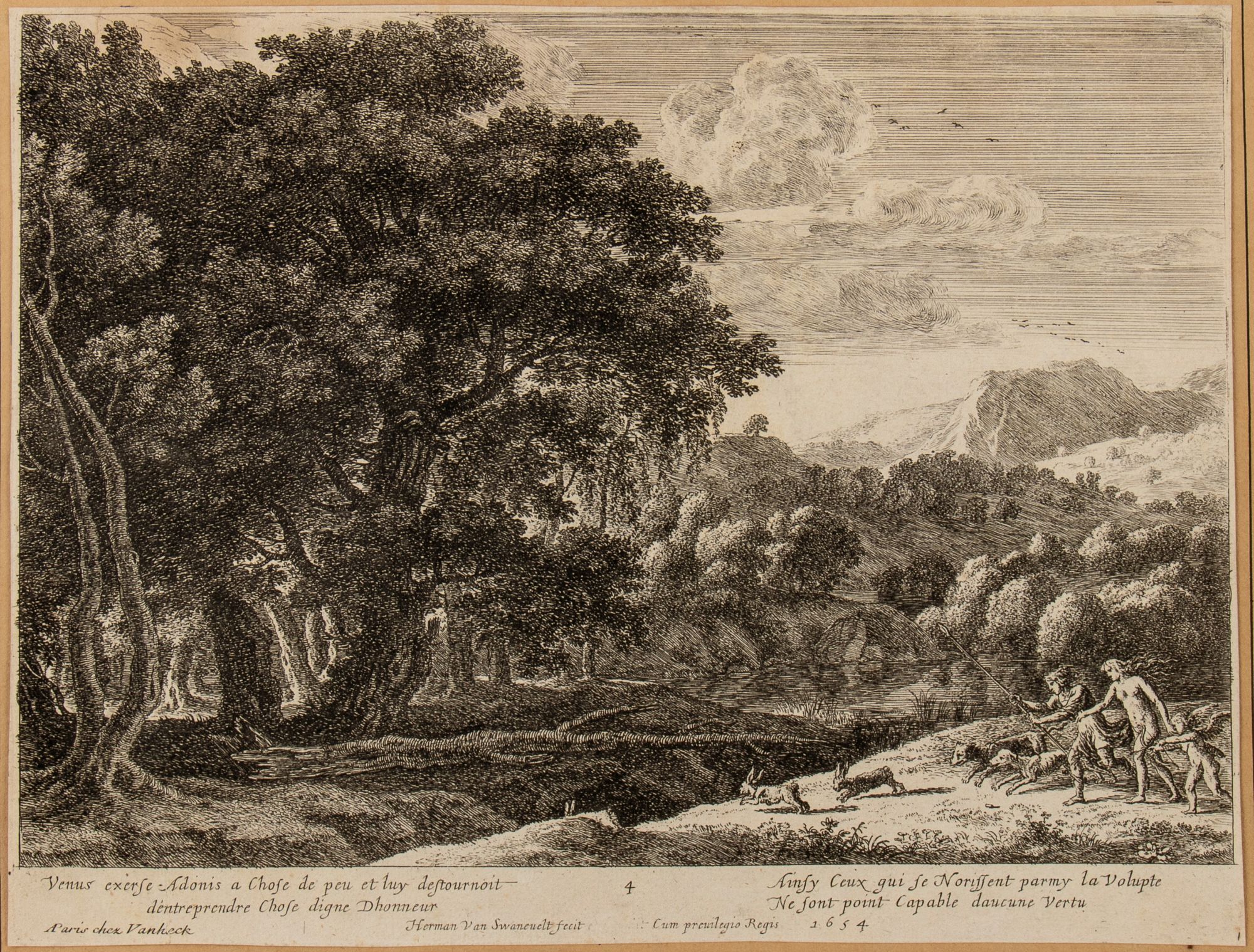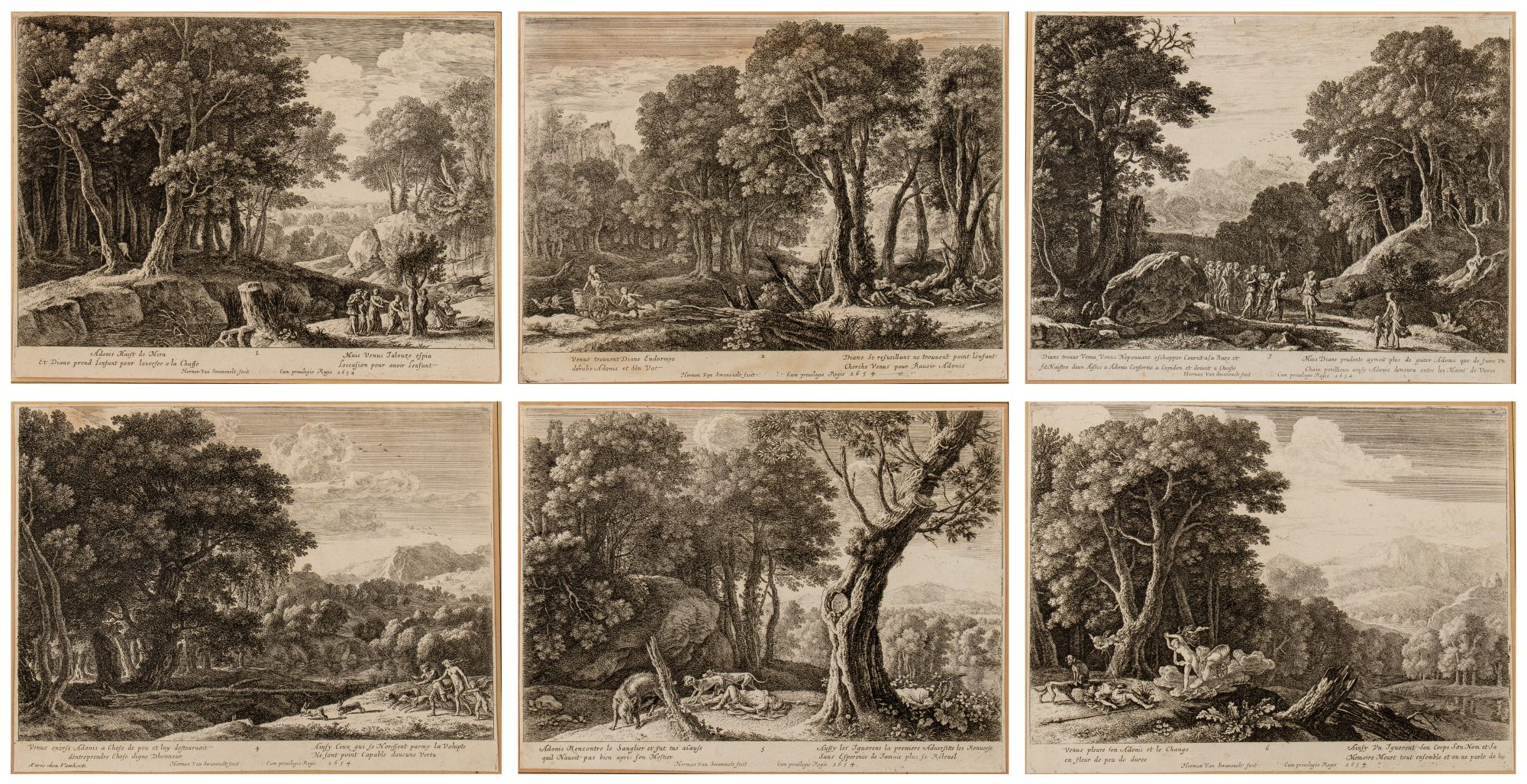 Herman van Swanevelt (Woerden 1603 - Parigi 1655) Sei paesaggi con la storia di Adone, 1654