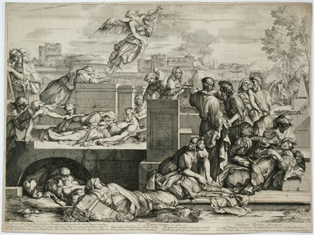 Dalla serie delle "Oeuvres de Miséricorde". Acquaforte, 438 x 590 mm. I stato su 2, con l'indirizzo dell'autore al Fauxbourg St. Anthoine. Robert-Dumesnil I.136.6.
