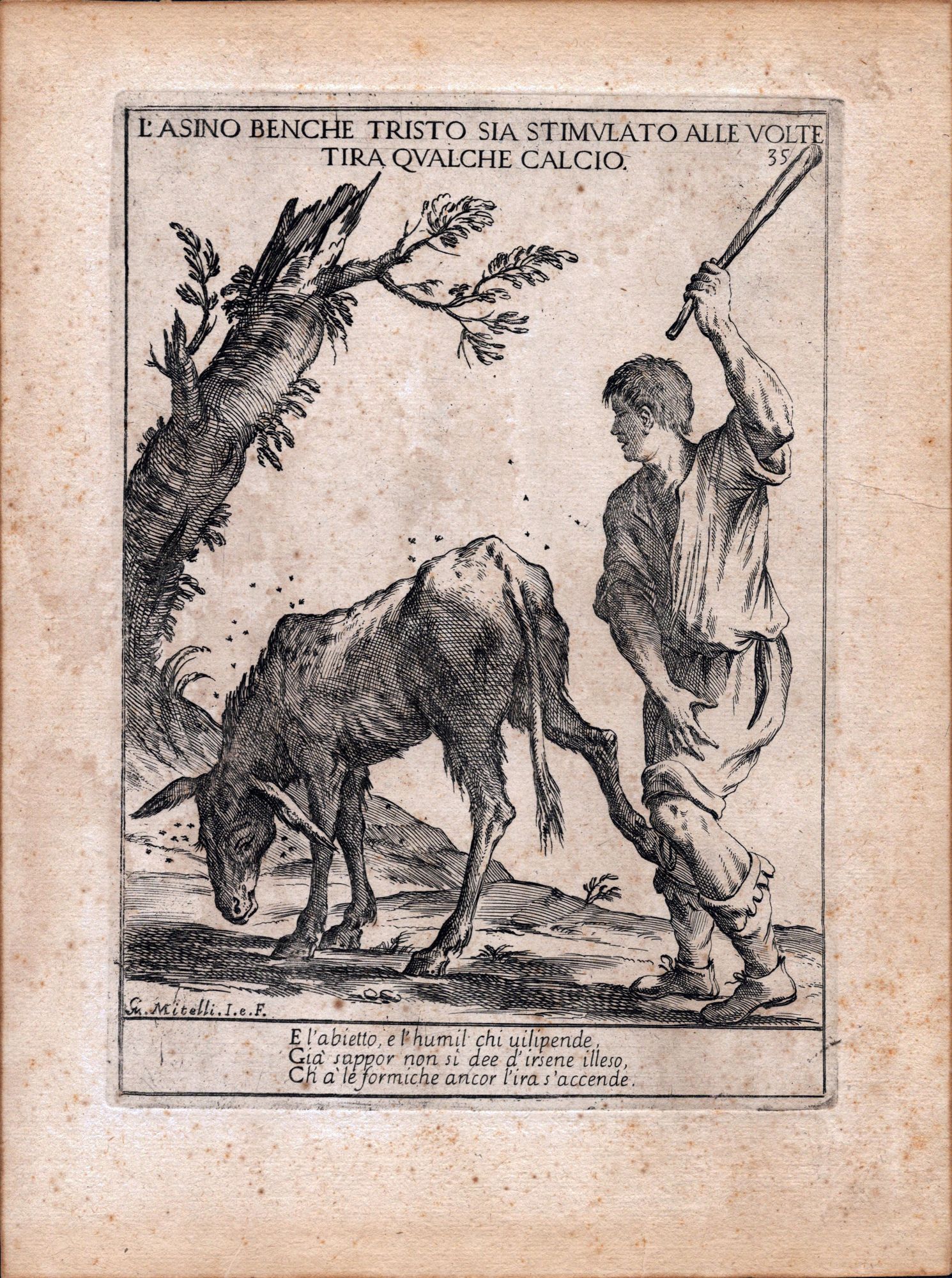 Giuseppe Maria Mitelli (1634 - 1718) L'asino benche tristo sia stimulato alle volte tira qualce calcio