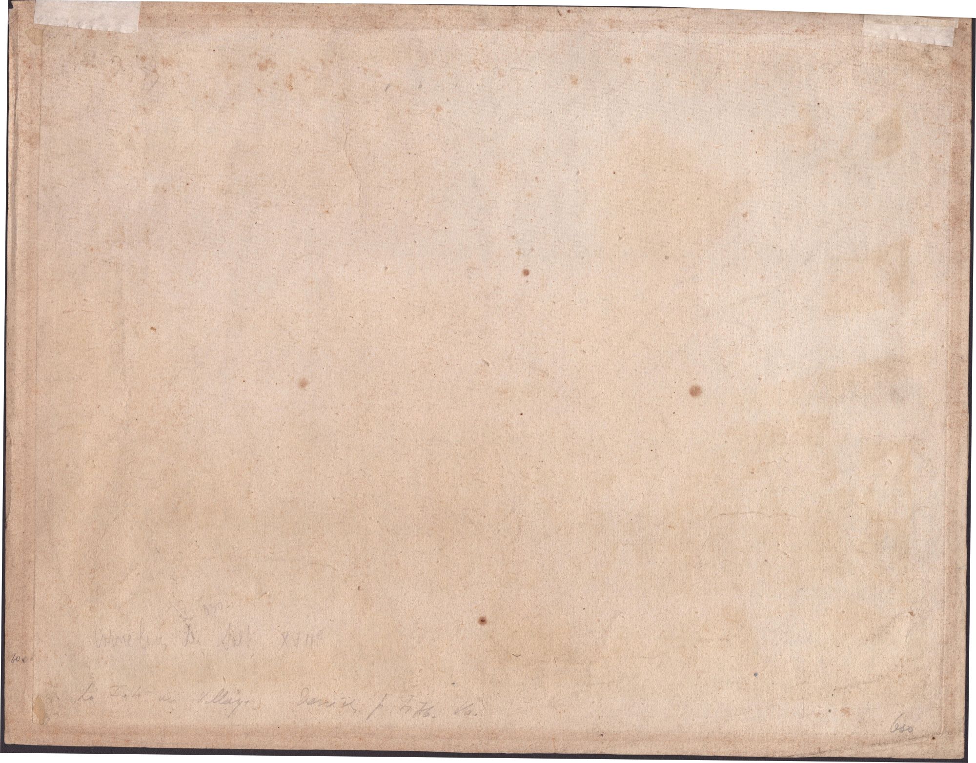 Stampata su carta vergata con filigrana. Foglio con margini di circa 1 cm su ogni lato. Leggermente brunito, con tracce di scolorimento da esposizione visibili sui margini. Lievi sgualciture. La stampa è applicata su supporto moderno in due punti, mediante nastro cartaceo sul verso. Per il resto, in ottimo stato.
