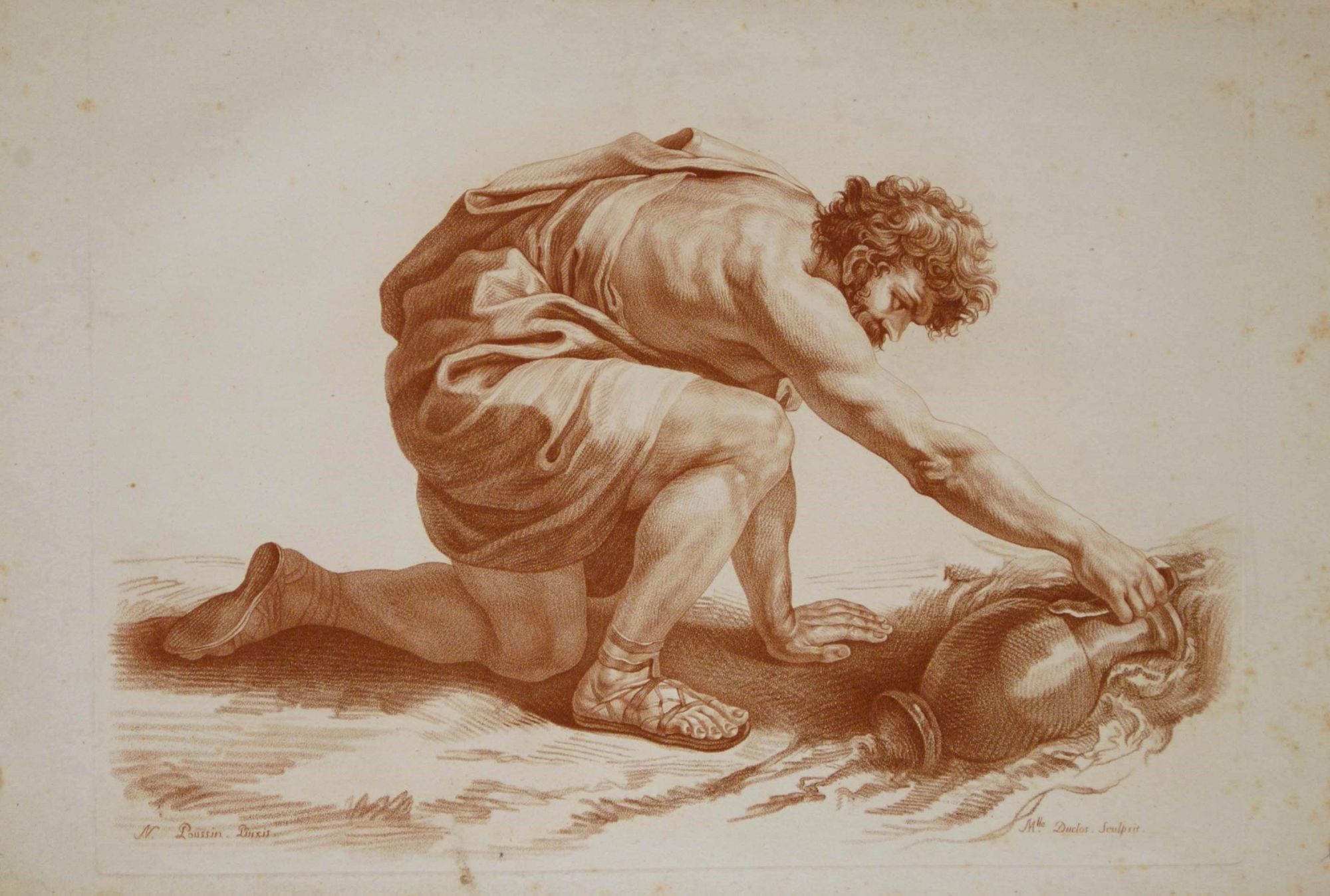 Lotto di due incisioni da Nicolas Poussin. Maniere de crayon, 345 x 525 mm ca. (cad. foglio). Tavole tratte dalla serie "Recueil de Têtes et de Figures choisies dans les plus beaux tableaux de Nicolas Poussin" pubblicata a Parigi nel 1806.