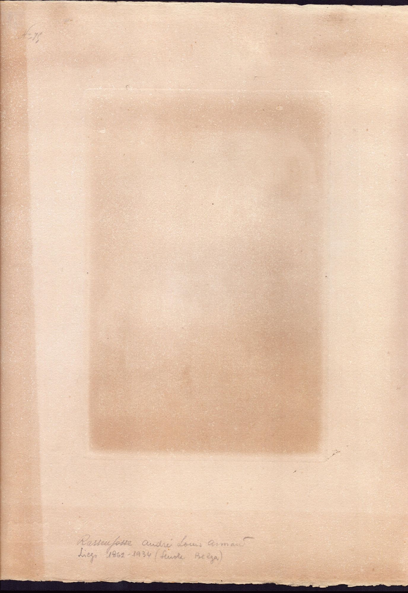 Splendida impressione su carta non vergata con filigrana e timbro a secco di Oscar Schepens Cie Editeurs Bruxelles (non in Lugt) in basso a destra. Foglio scolorito.