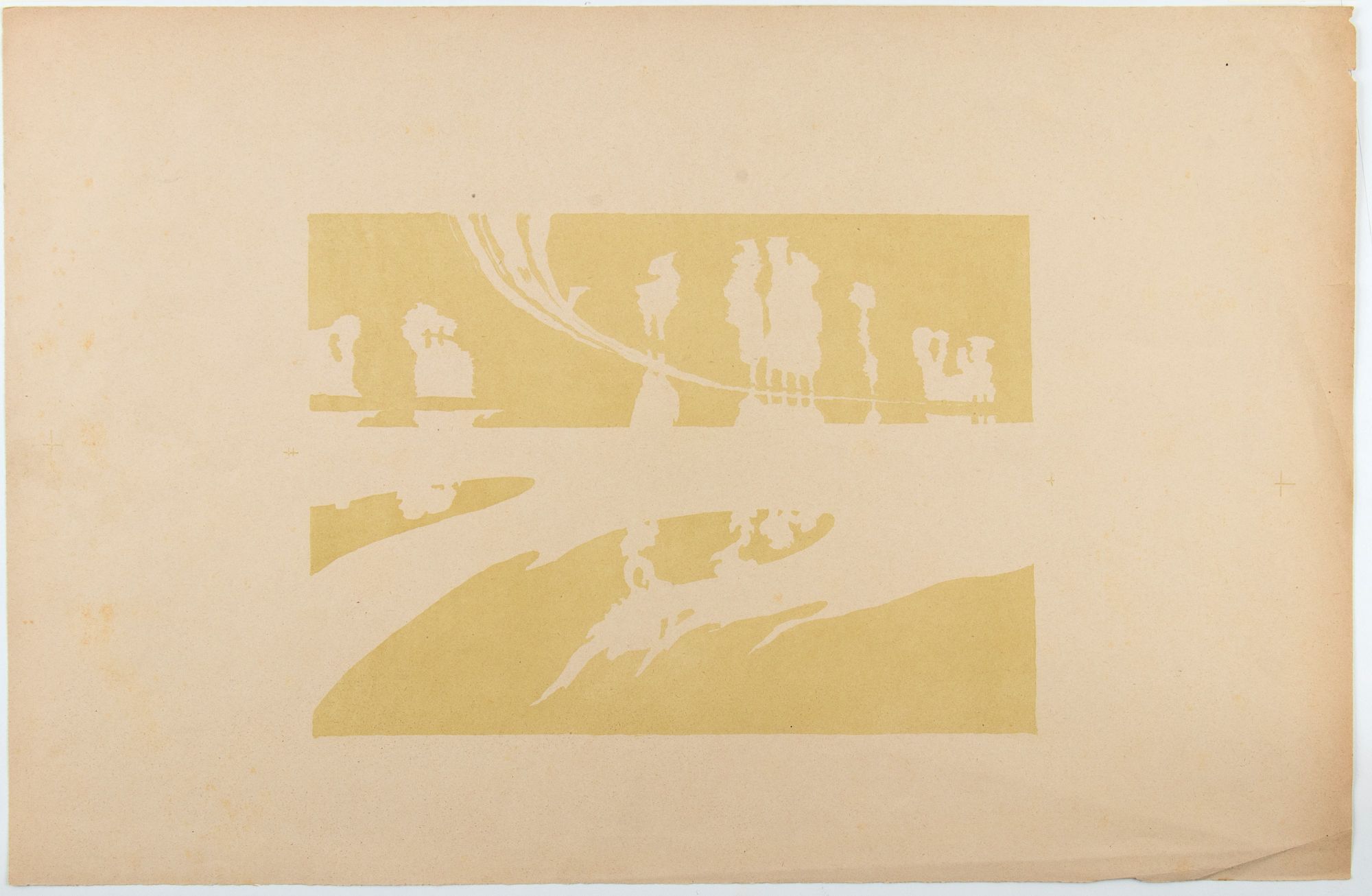 Lotto di tre prove di stampa: a un colore, a due colori e a tre colori. Litografia, 352 x 540 mm cad. foglio.
