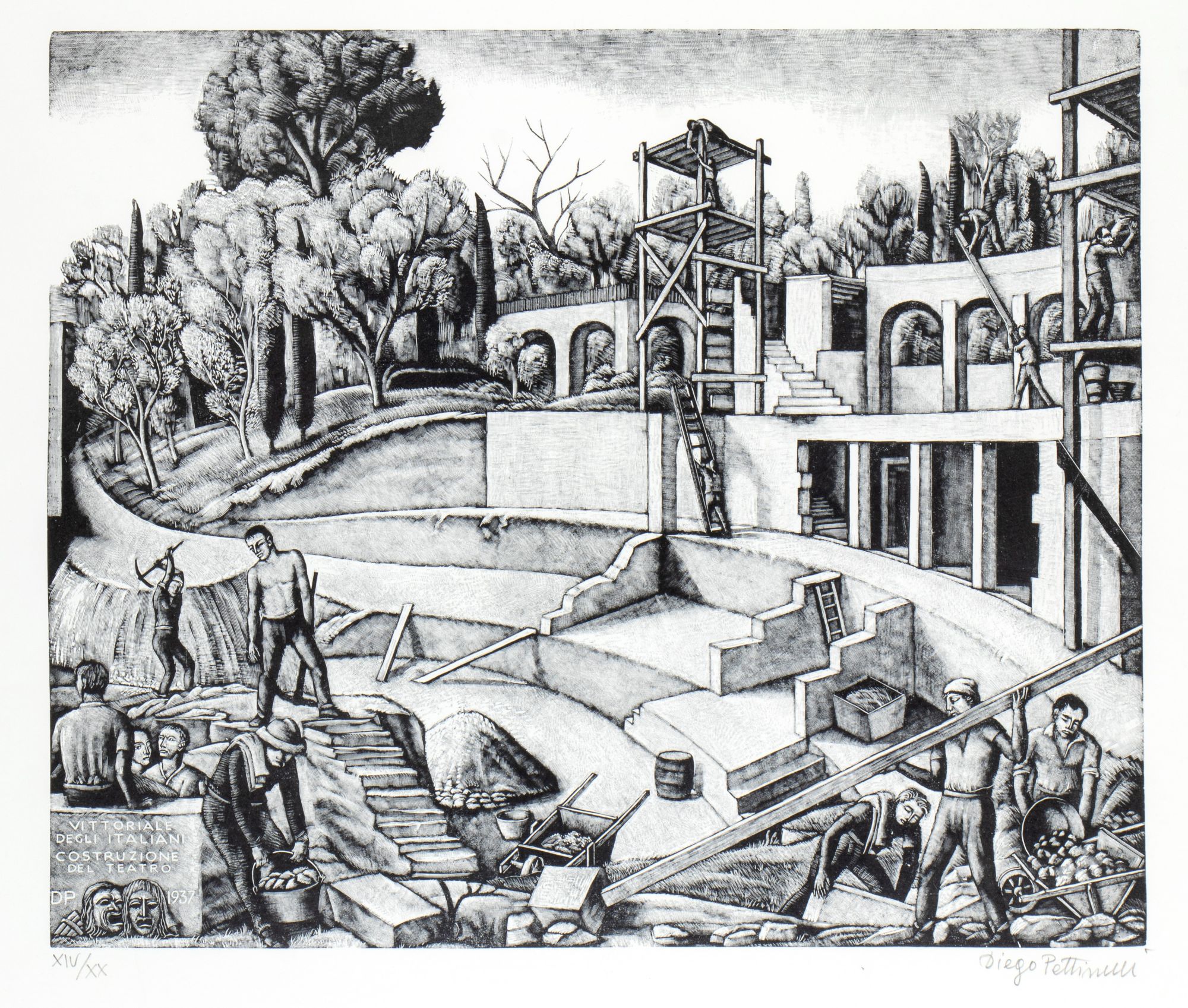 DIEGO PETTINELLI (Roma 1897 - 1989) Vittoriale degli Italiani. Costruzione del teatro., 1937