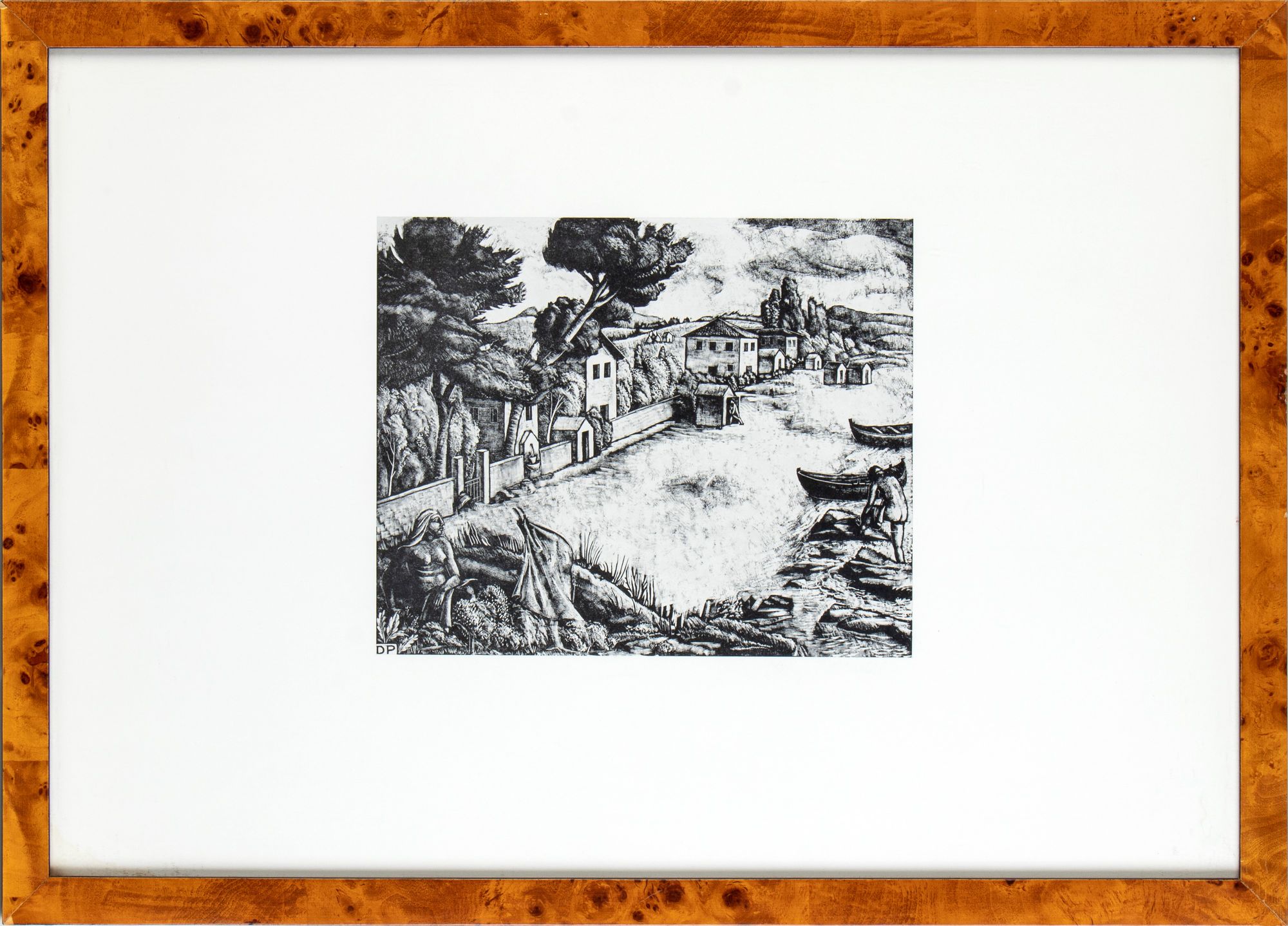 DIEGO PETTINELLI (Roma 1897 - 1989) Scrocio con case e le barche