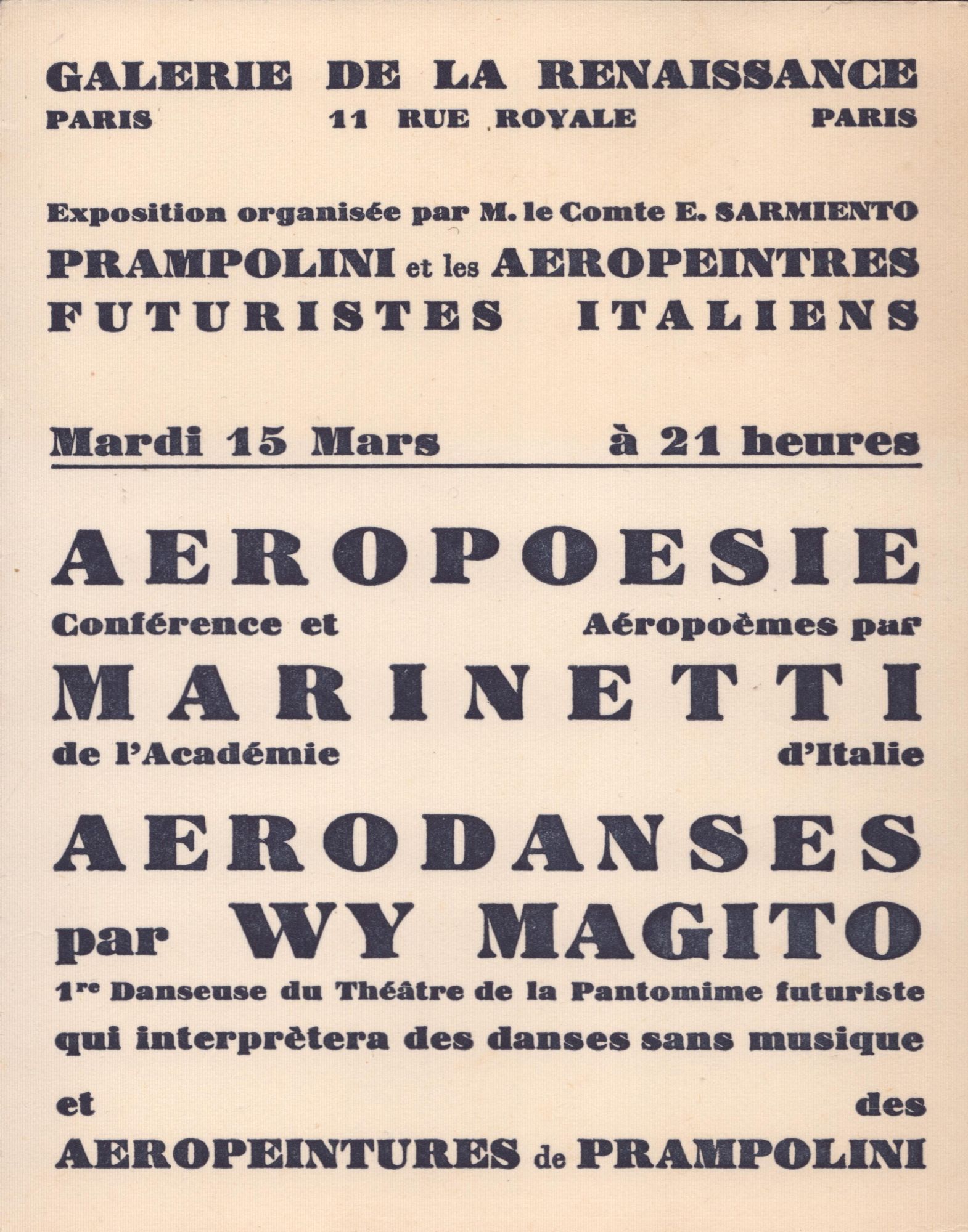 Prampolini et les Aeropeintre ... Aeropoemes par Marinetti. Galerie de la Renaissance Paris 15 mars [1932]