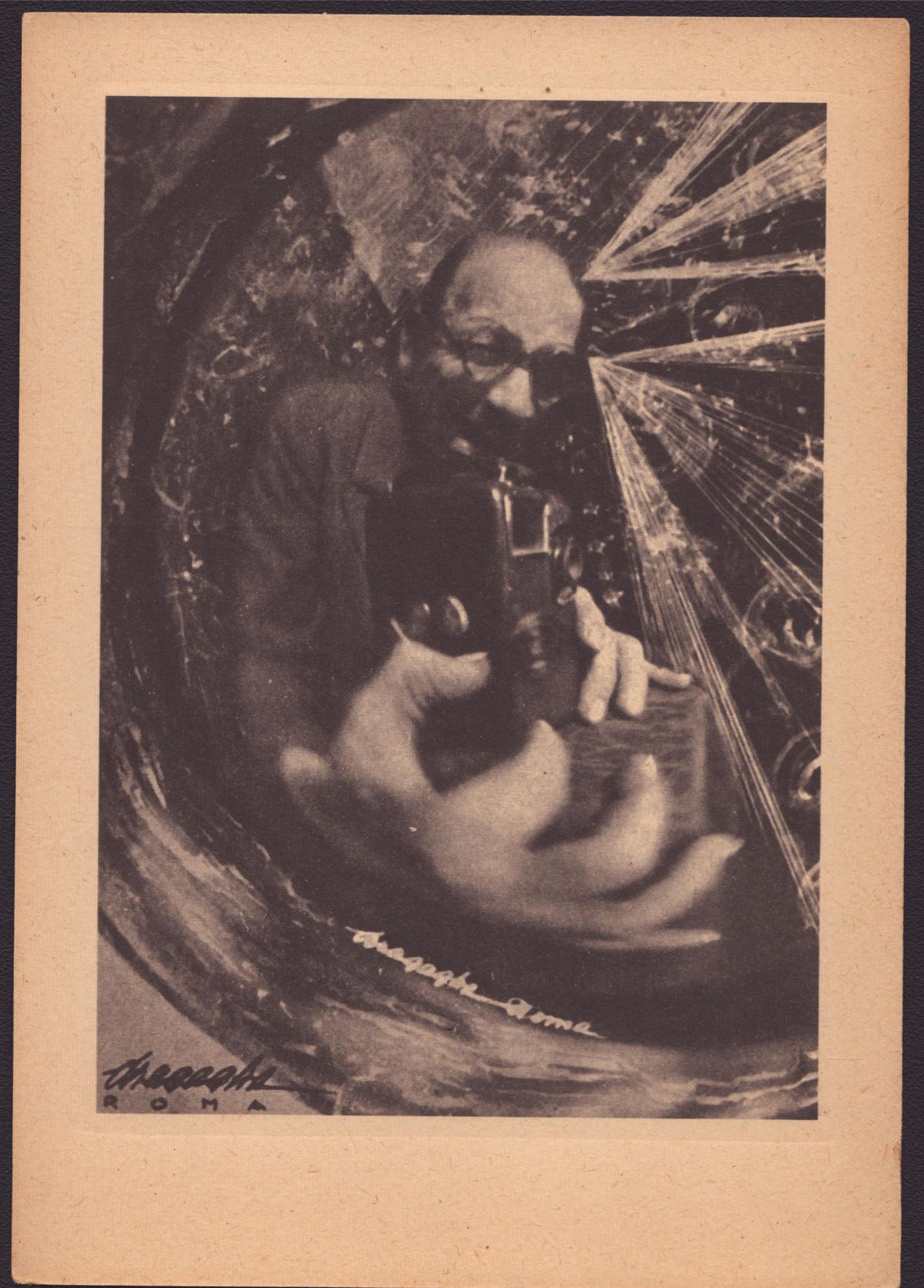 Cartolina futurista, 150 x 105 mm (cad.). Sul verso, l'indirizzo del fotografo "Via Lombardia, 14, Roma" e il titolo; firma di Bragaglia in facsimile sulla lastra.