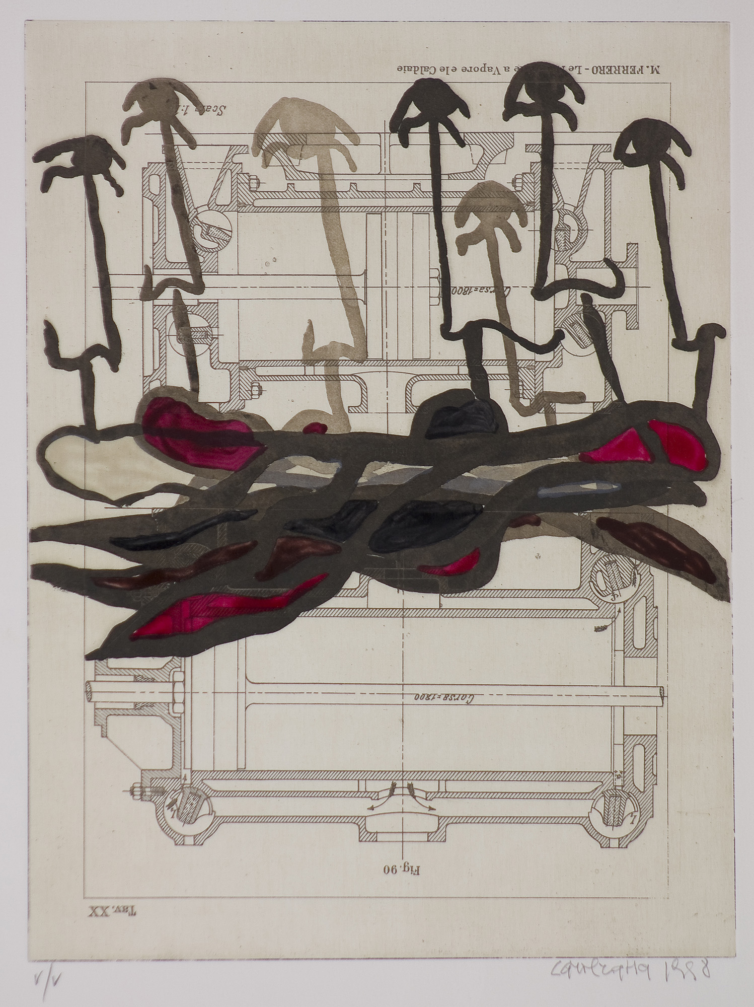 Intervento dell'artista, sucessivo alla stampa, a smalti colorati.