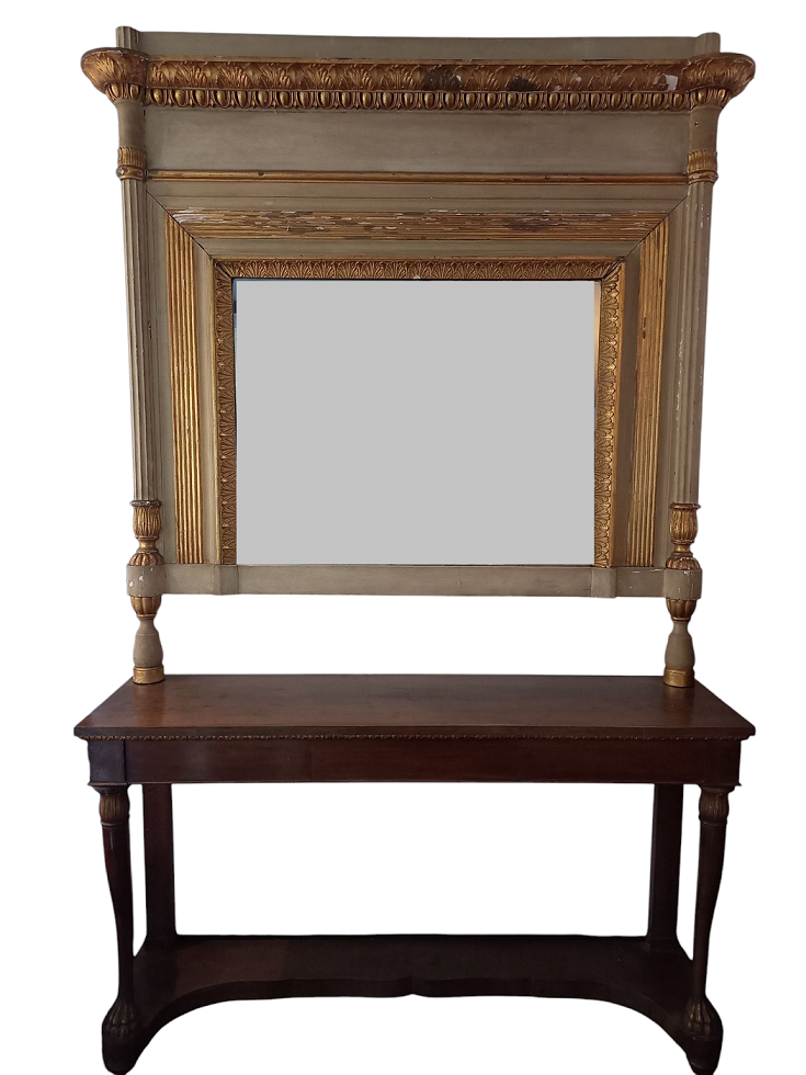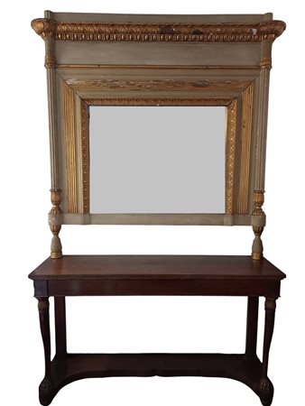 Caminiera Impero in legno laccato e dorato sec.XIX cm.145x140 e console...