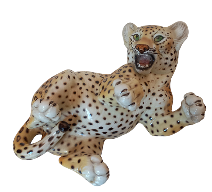 Manifattura Ronzan - Leopardo in ceramica decorata in policromia lunghezza...