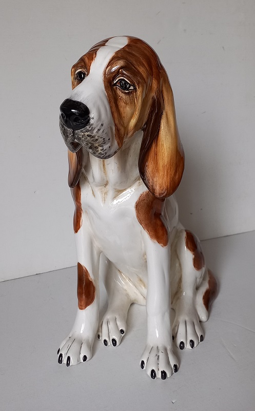 Bassett Hound in ceramica policroma italiana h.cm.48 (lieve restauro)