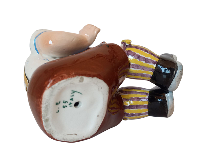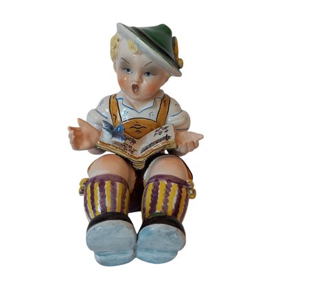 Bambino con libro e uccellino - Ceramica policroma vintage - marchio alla...