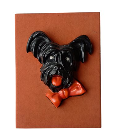 Ceramica Lenci - Testa di cagnolino - ceramica policroma montata su supporto...