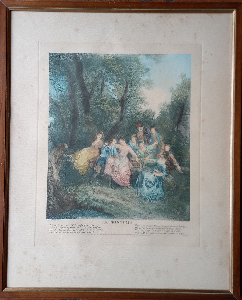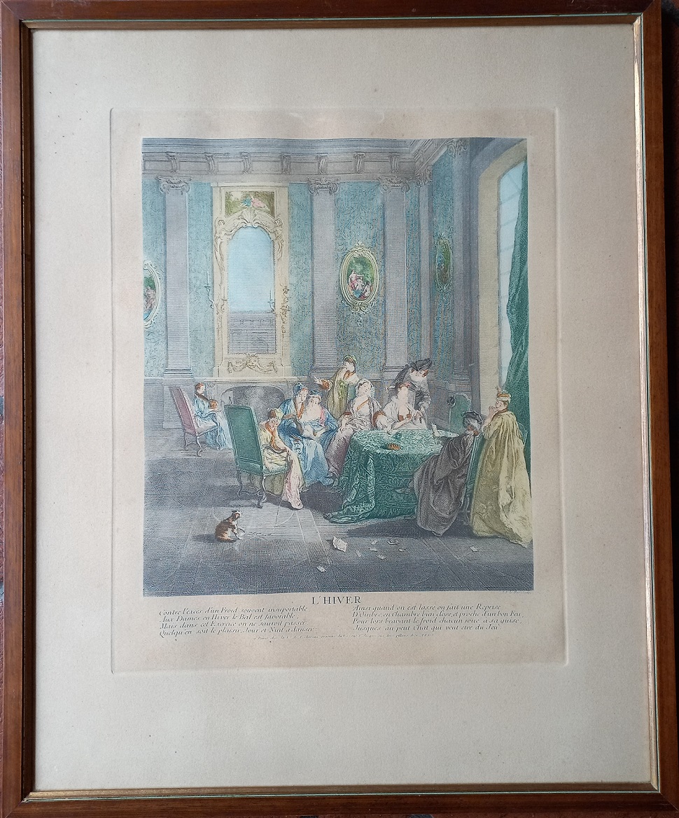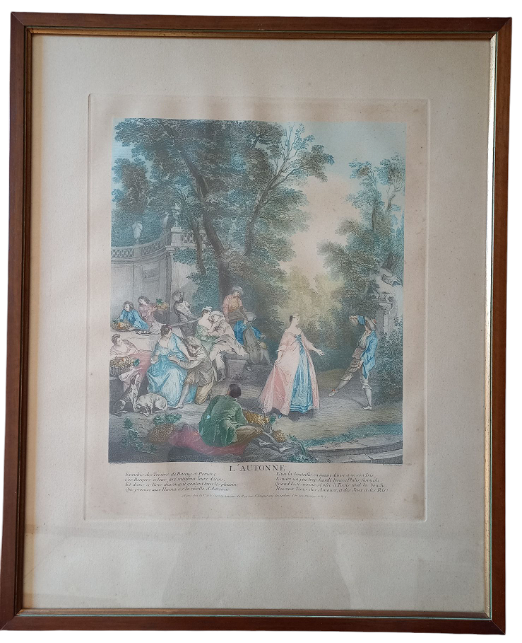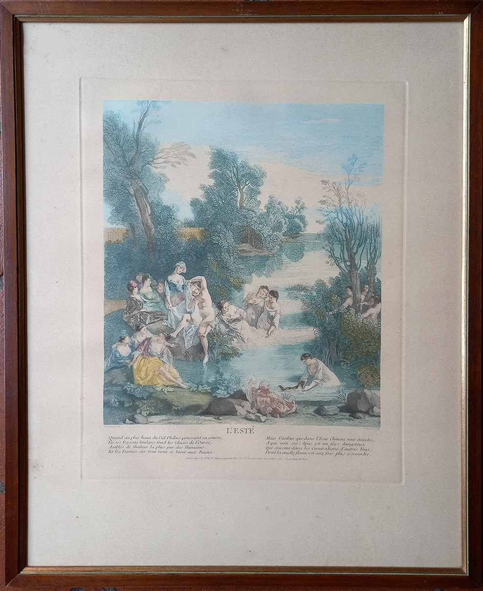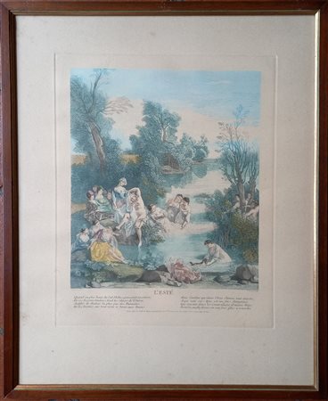 Gerard Jean Baptiste Scotin (1671-1716) - Le stagioni - quattro acqueforti colorate - lastre mm.450x360 fogli cm.60x50