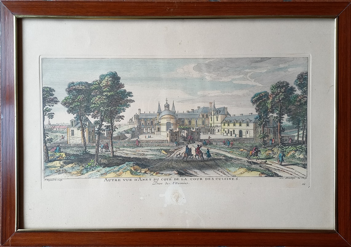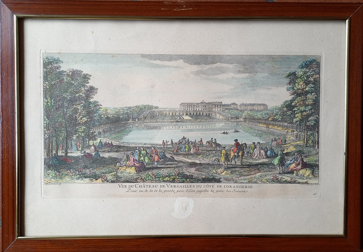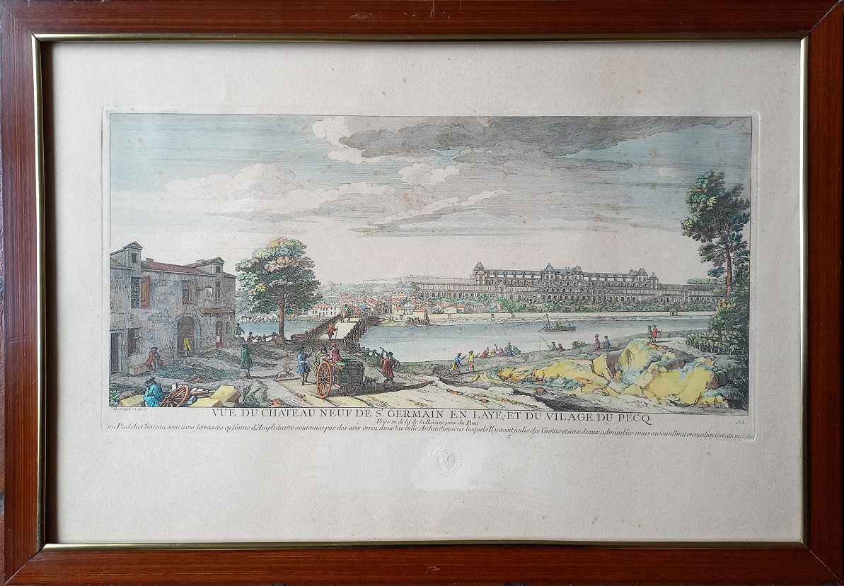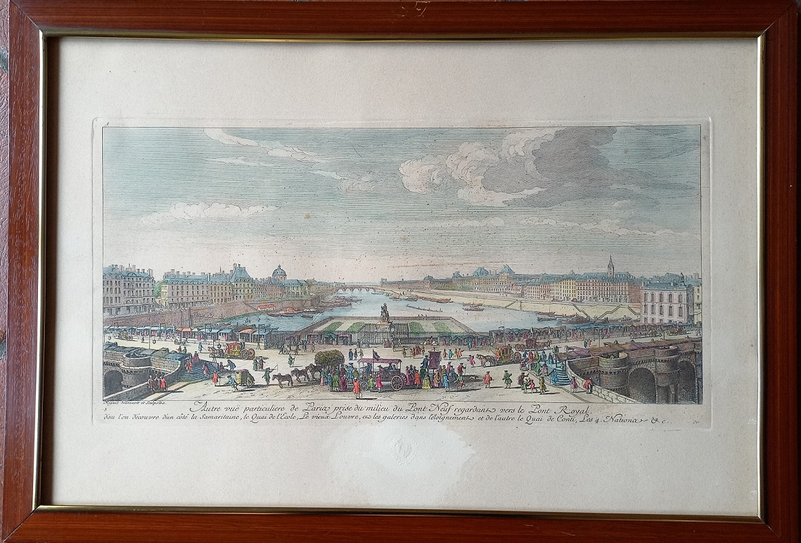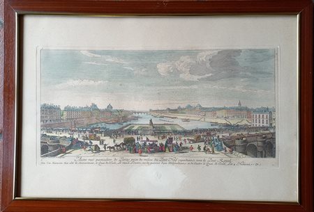 Jacques Rigaud (1671-1754) - Tre acqueforti a colori con vedute di Parigi - lastre mm.240x480 fogli cm.37x55 in cornice