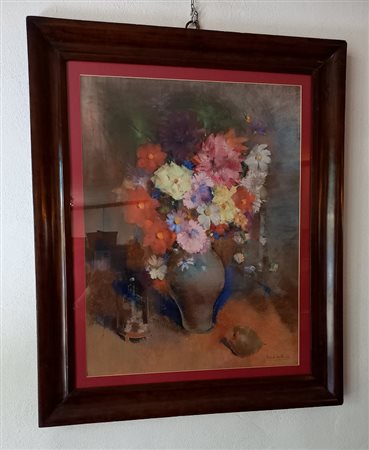Frank Mortelmans (1898-1986) - Vaso di fiori - pastello su carta cm.67x52 firmato in basso a destra