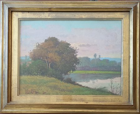 L. Giorgi - Paesaggio fluviale con alberi - olio su tavola cm.30x40 firmato...