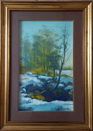 Salvatore Sportelli (sec.XX) - Paesaggio innevato - olio su faesite cm.50x30 firmato in basso a destra