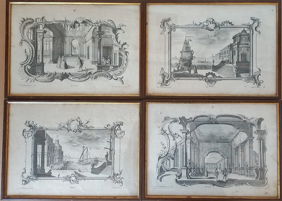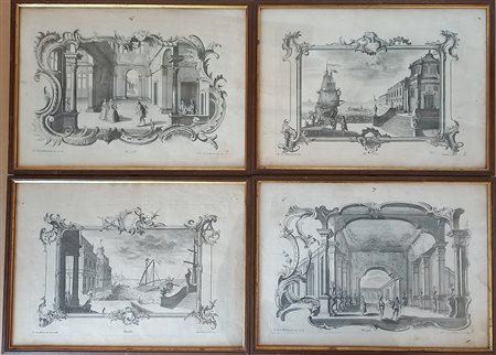 Johann Georg Hertel (XVIII sec.) Quattro acqueforti con vari soggetti numerate 116/2/4 e 170/2/3 lastra mm.198x296 f.cm.24x33