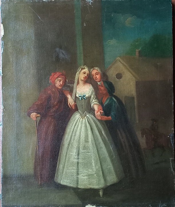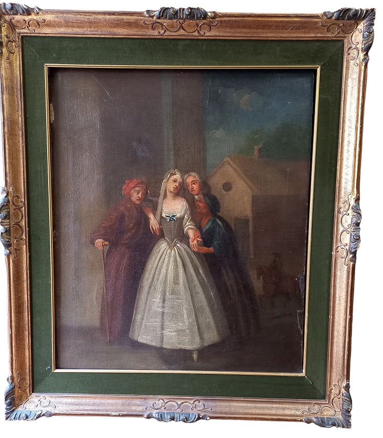 La preveggente e la sposa - Olio su tela XVIII secolo cm.74x61 in cornice (difetti)