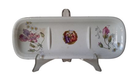 Società Ceramica Richard - Piattino in ceramica decorato con fiori e figure cm.23x9x3 - marchio sotto la base